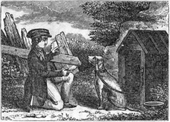 Growler seems to be very happy, though he is kept close. He barks and growls, in the night, at every little noise he hears, and will not allow any body to come near the house. Strange that Growler can be so contented; he is better than some boys, who cry because they have to sit still, on a bench, a few hours every day, to study. How would they feel, to be always chained to the bench, as Growler is to his kennel?