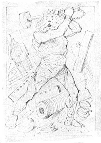 [53] Since 1892, I may explain, Sir John Tenniel and Punch have moved with the times. Sir John now draws his cartoons upon the Chinese-whitened surface of cardboard, and they are photographed on the block in the usual way.