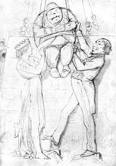 | Origin and Growth of the Cartoon—And of its Name—Its Reflection of Popular Opinion—Source of Punch's Power—Punch's Downrightness offends France—Germany—And Russia—Lord Augustus Loftus's Fix—Lord John Russell and "No Popery"—Mr. Gladstone and Professor Ruskin on Punch's Cartoons—Their Effect on Mr. Disraeli—His Advances and Magnanimity—Rough Handling of Lord Brougham—Sir Robert Peel—Lord Palmerston's Straw—Mr. Bright's Eye-glass—Difficulties of Portraiture—John Bull alias Mark Lemon—Sir John Tenniel's Types | 185 |