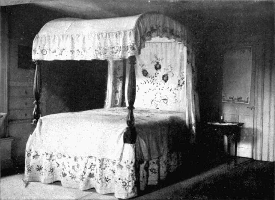 We can easily believe that stores of linen and precious china, as well as the small wheels for the spinning of the flax, could not be denied to the devoted women who chose to share the hard fortunes of their Pilgrim husbands and fathers. It is probable that in one form or another possessions of crewel embroidery were transported with them.