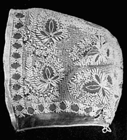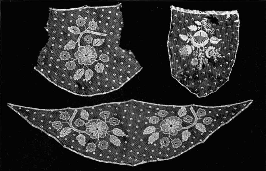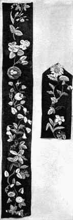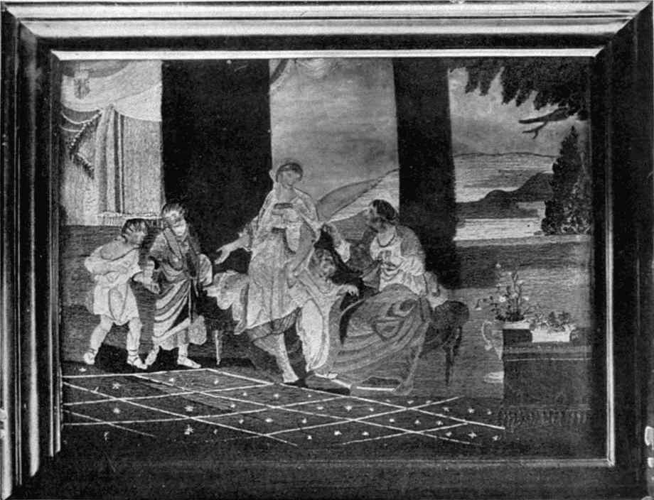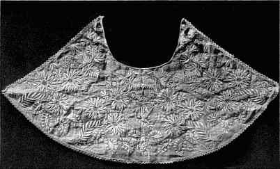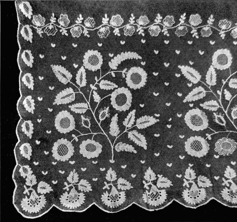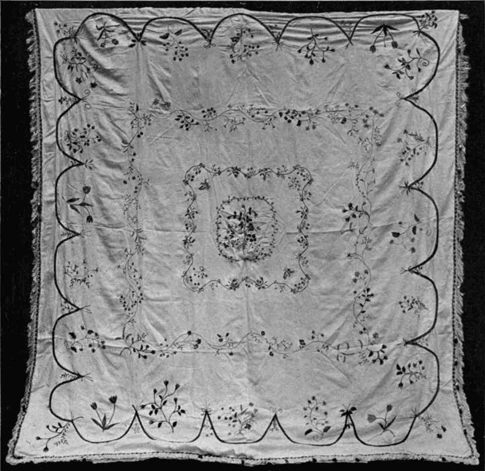 The devoted mothers of the American race, who sailed the seas in those far-off days, might have brought some favorite "piece" of embroidery among their most intimate belongings, wherewithal to while away the hours of weary days upon the limitless breadths of ocean. There would be intervals of calm between storms, and periods when even the merest shred of a home-practiced art would be doubly and trebly valued, [19] like a piece of heavenly raiment to a naked and banished angel.