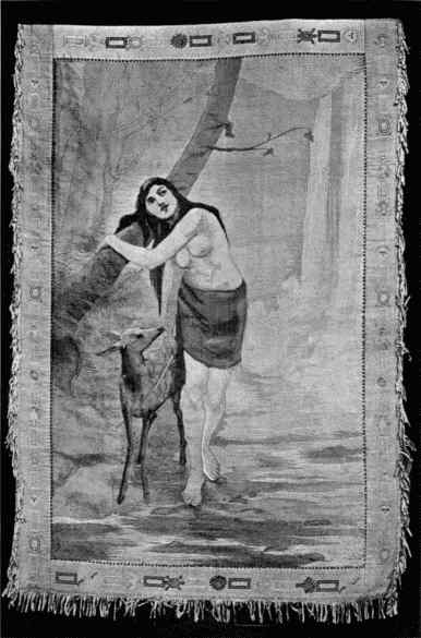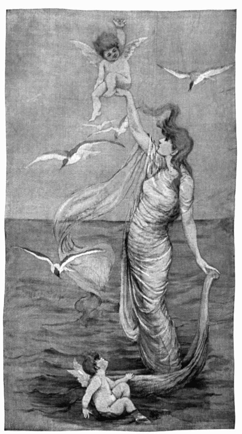 But in the meantime what were we to do about our tapestries? They were costly, very costly to produce, and although we took account of the delight of their creation and put it on the credit side of our books, along with the fact that the weekly pay roll of the tapestry room went for the comfort and maintenance of the students whom we loved and cherished, I soon realized the fact that a commercial firm could not be burdened with the fads of any one member. Before I had carried this conclusion to its logical end, we had opportunities of using our skill worthily in several of the new great houses of the time. When the Cornelius Vanderbilt house was erected on Fifth Avenue and Fifty-Seventh Street we received an order for a set of tapestries for the drawing-room walls. These were executed from ideal subjects and of single figures. I remember the "Winged Moon" among them, which was an ideal figure [138] of the new moon lying in a cradle of her own wings. This was but one of the set, one or two of which we afterward made in replica for an exhibit in London. There was no lack of subjects in our background of American history. The legends and beliefs of our North American Indians were full of them, and one of the first we selected was the lovely story of "Minnehaha, Laughing Water," from Longfellow's "Hiawatha." The sketch had been sent to us by Miss Dora Wheeler, as the prize composition of the Saturday Composition Class at Julien's Studio in Paris.
