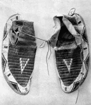 The porcupine quill embroidery of American Indian women is unique among the productions of primitive peoples, and some of the dresses, deerskin shirts, and moccasins with borders and flying designs in black, red, blue, and shining white quills, and edged with fringes hung with the teeth and claws of game, or with beautiful small shells, are as truly objects of art as are many things of the same decorative intent produced under the best conditions of civilization.