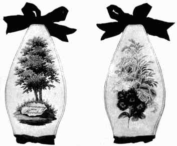 The designs were copied from patterns printed [100] in color upon cross-ruled paper, and consisted of bunches of flowers of various sorts, or pictures of dogs, and horses, and birds. A white lap dog worked upon a dark background was the favorite design for a footstool, and this small object tapered out the existence of decorative cross-stitch, until it grew to be in use only as a decoration for toilet slippers. The final end of this style of work was long deferred on account of the fact that a pair of cloth slippers, embroidered by the hands of some affectionate girl or doting woman, was a token which was not too unusual to carry inconvenient significance. It might mean much or little, much tenderness or affection, or a work of idleness tinctured with sentiment.