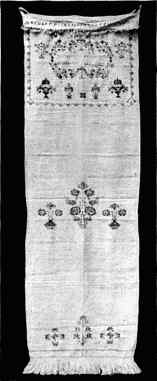 LINEN COVERLET embroidered in Kensington stitch with colored wool.