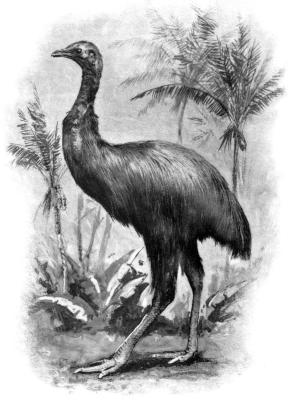 The name ‘emu’ has an interesting history. It occurs in the forms ‘emia’ and ‘eme’ in Purchas his Pilgrimage, in 1613. ‘In Banda and other islands,’ says Purchas, ‘the bird called emia or eme is admirable.’ We should probably pronounce ‘eme’ in two syllables, as e-mé. This eme or emia was doubtless a cassowary—probably that of Ceram. The idea that it was a native of the Banda Group appears to have existed in some quarters at the beginning of the seventeenth century, but the idea was assuredly an erroneous one. So large a struthious bird as the cassowary requires more extensive feeding-grounds and greater seclusion than was to be found in any island of the Banda Group, and, as at the present day so in the past, Ceram was the true home of the Malayan cassowary, which found and which finds in the extensive forests of that island the home adapted to its requirements. It is, however, equally certain that at an early date the Ceram cassowary was imported into Amboyna and probably into Banda also, and we know of an early instance of its being introduced into Java, and from Java into Europe. When the first Dutch expedition to Java had reached that island, and when the vessels of which it was composed were lying at anchor off Sindaya, some Javans brought a cassowary on board Schellenger’s ship as a gift, saying that the bird was a rare one and that it swallowed fire. At least, so they were understood to say, but that they really did say so is somewhat doubtful. [p22] However, the sailors put the matter to the test by administering to the bird a dose of hollands; perhaps the hollands was ignited and administered in the form of liquid fire, but it is not expressly stated that this was the case. This cassowary was brought alive to Amsterdam in 1597, and was presented to the Estates of Holland at the Hague.1 A figure of it, under the name ‘eme,’ appears in the fourth and fifth German editions of the account of this voyage of the Dutch to Java, by Hulsius, published at Frankfort in 1606 and 1625. The figure is a fairly accurate representation of an immature cassowary.