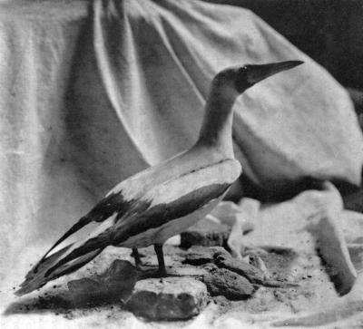 On the sea-coast were cormorants, curlews, and black-and-white egrets. The curlews, which pass the summer in New Zealand and the remainder of the year in islands of the Pacific Ocean, are of the species Numenius cyanopus. They leave New Zealand in autumn, with the exception of a few individuals which remain in favoured localities. The ‘aigrettes blanches et noires’ were perhaps reef herons; the black bird of the form of an oyster-catcher, and possessing a red bill and red feet, was doubtless the Sooty Oyster-catcher (Hæmatopus unicolor), which [p35] in Tasmania is known as the Redbill. Terns and gannets were amongst the birds of the coastal waters. Of New Zealand terns, Sterna frontalis and S. nereis are the species which are seen most frequently. The ‘goelette blanche’ may have been Gygis candida. The gannets may have been ‘manches de velours’—the name by which French mariners knew the Masked Gannet (Sula cyanops). The body of this gannet is white; the wings are rich chocolate brown. It is a bird of the tropical and sub-tropical seas of the world and its appearance in New Zealand waters is infrequent.