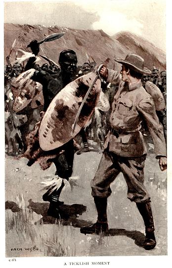 During the week that followed the arrival of the troops we received intelligence of several attacks upon isolated farms, and even small villages, in the outlying and more sparsely populated districts; from which it speedily became apparent that the regular troops, consisting, as they did, entirely of infantry, and hampered, as they were, by their baggage wagons, were altogether too slow-moving to be effective in overtaking and bringing to action the nimble bodies of savages, who were encumbered with no impedimenta of any description whatsoever excepting their weapons—a shield, knobkerrie, and sheaf of assagais; who slept under the stars, quenched their thirst at every stream or runlet that crossed their path, and eat whatever came to hand, whether it chanced to be buck, bullock, or green mealies.