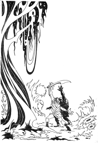 Startled by the noise, a husa, which had been hiding beneath a nearby bush, raced into the open. The small animal dashed madly toward the Earl, slid wildly almost under the charger's feet, and put on a fresh burst of speed, to disappear into the underbrush. The huge beast flinched away, then reared wildly, dashing his rider's head against a tree limb.