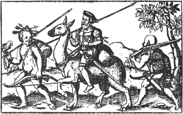 »Über die Gründe,« fährt Mondschein fort, »die Ulrich Schmidel bewogen, an der Expedition Mendozas teilzunehmen und wie er nach Antwerpen kam, gibt er selbst keinen Aufschluß, die Angabe Gumpelzhaimers, er sei als Handelsbeflissener dahin gekommen, entbehrt zwar nicht der Wahrscheinlichkeit, ist aber nur mit dem allgemeinen Hinweis auf die vorhandenen Akten (wo?) und auf seine Reisebeschreibung begründet.« Ich füge ergänzend zu, daß auch Dominguez im Vorworte zu seiner englischen Übersetzung auf die gleiche Vermutung kam. »Dafür, daß ihn die Lust an Abenteuern vom stillen Strand der Donau in die Ferne trieb, spricht auch, daß er als gemeiner Soldat Dienste nahm, wie er denn auch nie ein Kommando inne hatte ...... Aber wenn auch nur gemeiner [23]Soldat, war Ulrich Schmidel gewiß ein tüchtiger Kriegsmann, wie niemand in Abrede stellen wird, der sein Werk zur Hand genommen. Als Hauptmann Gonzalo Mendoza sich sechs tüchtige Soldaten zu einer Meerfahrt auswählte, nahm er Schmidel nebst fünf Spaniern, und während einer Unternehmung wird er einmal neben dem Hause des befreundeten indianischen Häuptlings »einfuriert«. Bei dem späteren Zuge nach Perú waren viele Leute vor Durst umgekommen und als die Eroberer in ein Dorf kamen, wo nur ein einziger Brunnen vorhanden war, wurde Schmidel die Wache an demselben übertragen, wobei er bei Edel und Unedel, bei männiglich große Gunst und Gnade erlangte, denn er war damit nicht zu »genausichtig«. Als er endlich nach 19jährigem Aufenthalte im Lande, wobei er anscheinend noch keineswegs an die Heimkehr dachte, einen Brief seines Bruders Thomas aus Straubing [24]erhielt und daraufhin Urlaub begehrte, wollte ihm der Befehlshaber Irala denselben anfangs nicht gewähren, offenbar weil er den kriegserfahrenen Schmidel ungern entbehrte. Welch verwegene Kühnheit aber in diesem Manne steckte, das zeigte er in dem Entschlusse, den er auch glücklich durchführte, den Weg von Asunción nach San Vicente, wo eben ein portugiesisches Schiff lag, zu Lande zu nehmen. Ein einzelner Mann und 20 Indianer, wozu sich noch vier Deserteure gesellten, zog er ohne Weg noch Steg über Berg und Tal, durch dichte Urwälder und zahlreiche Sümpfe mitten durch Indianerstämme hindurch, die zwei seiner Gefährten auffraßen, ein Schicksal, das auch ihm drohte, 376 Meilen weit an die Küste. Sein früherer Oberbefehlshaber, Alvar Nuñez Cabeza de Vaca hatte mit 250 Mann fast denselben Weg genommen, dabei aber nahezu die Hälfte infolge der Strapazen verloren. Schmidel war in der Tat vom Glück in hohem Maße begünstigt.« ....