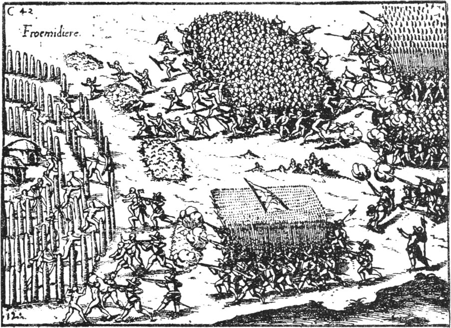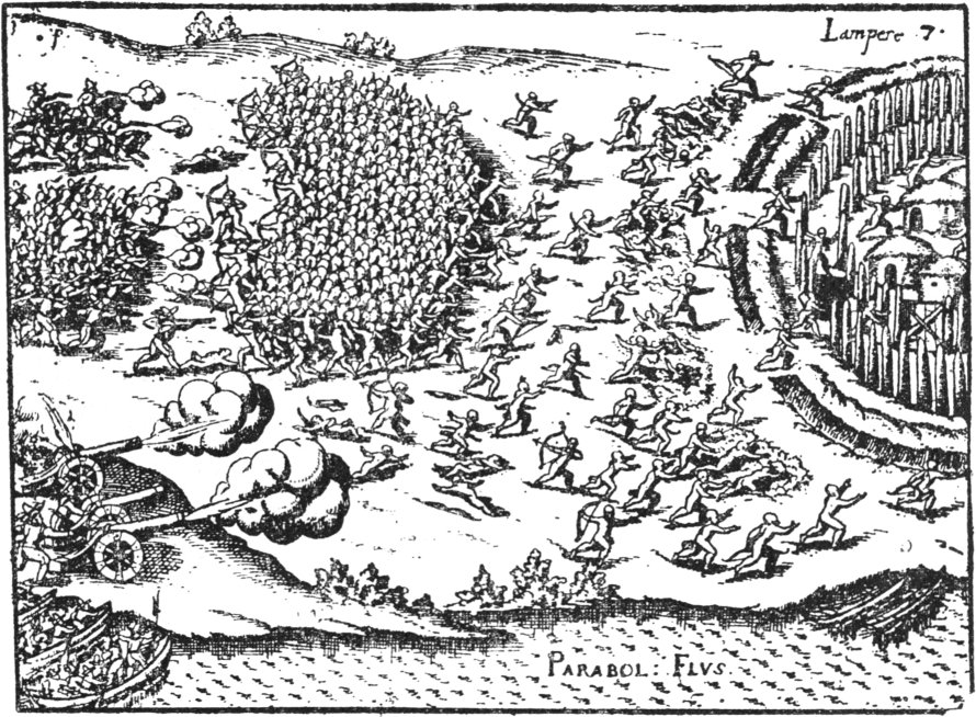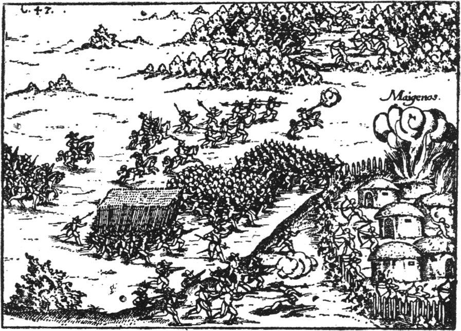 Da, es war am 27. Dezember 1536, erschienen plötzlich 23 000 Indianer von den Stämmen der Kerandís, Guaranís, Charrúas und Chaná Timbús vor der Stadt, schossen mit brennenden Pfeilen die strohgedeckten Lehmhütten in Brand und liefen Sturm gegen die Stadt. Es gelang ihnen sogar, vier Schiffe, die eine Meile vom Ufer vor Anker lagen, in Brand zu schießen, so daß sie von der bestürzten Besatzung verlassen werden mußten. Erst als die Schiffskanonen gegen sie abgefeuert wurden, zogen sie ab, nachdem sie dreißig Europäer erschlagen.