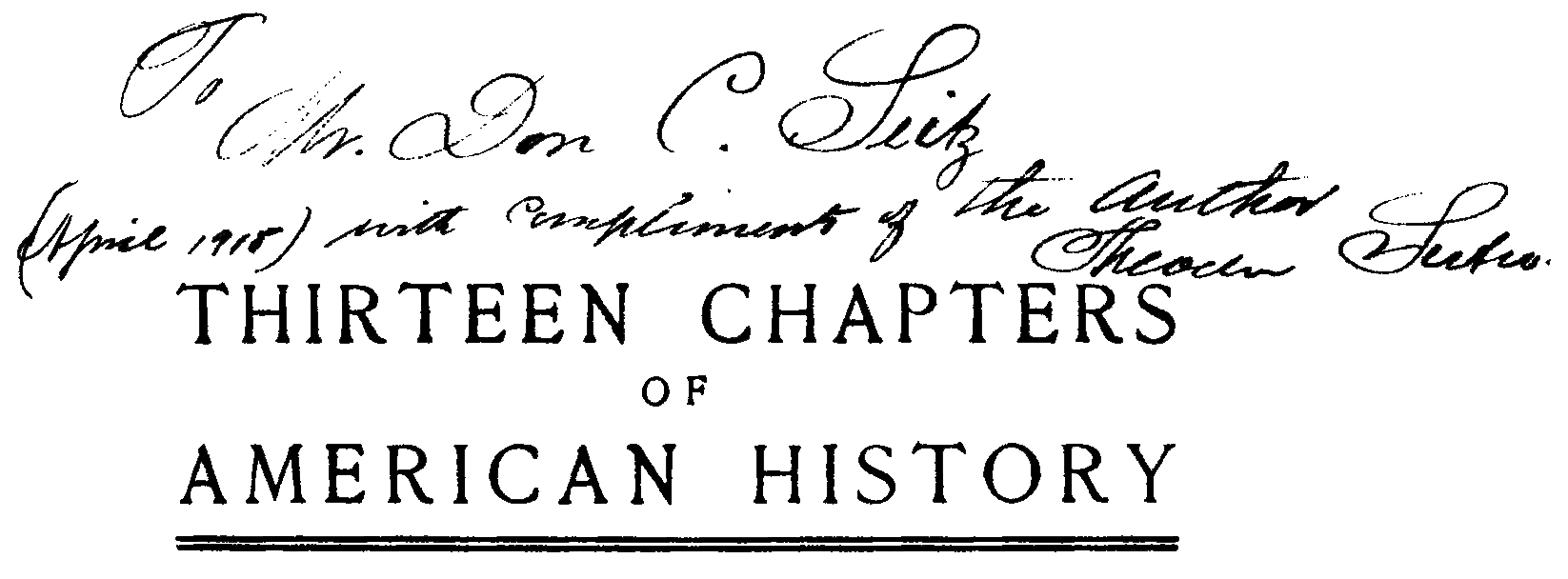 Inscription: To Mr. Don C. Seitz (April 1918) with compliments of the author Theodore Sutro