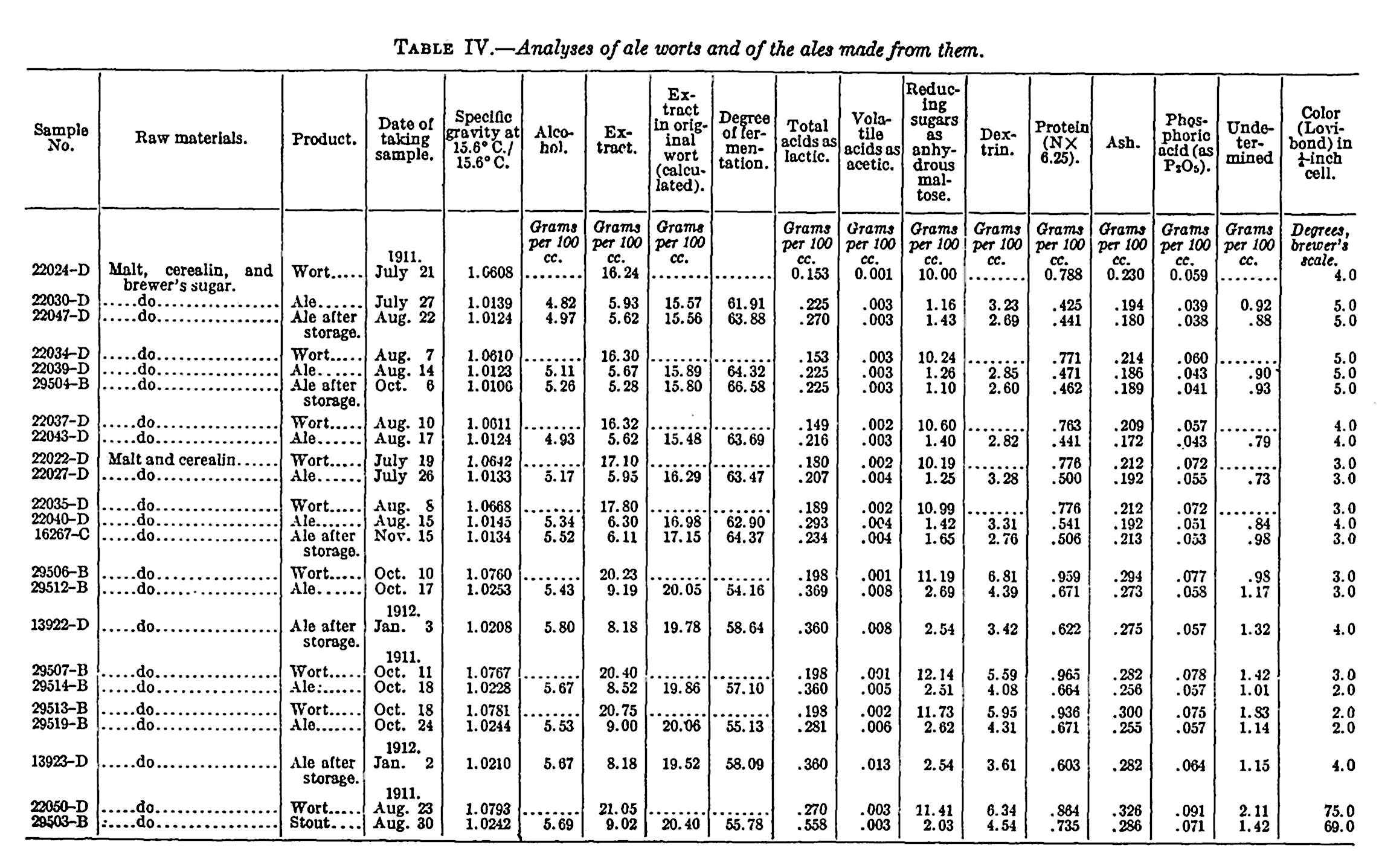 Wort | Dec. 5 1911 | 1.0489 | ... | 12.95 | ... | ... | .144 | .003 | 9.05 | ... | .461 | .229 | .066 | ... | ... |