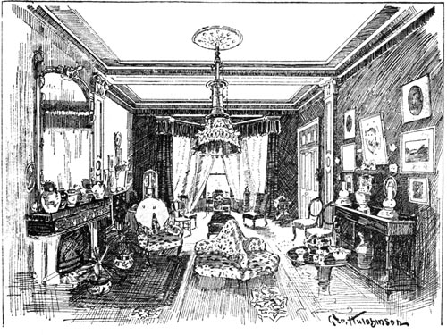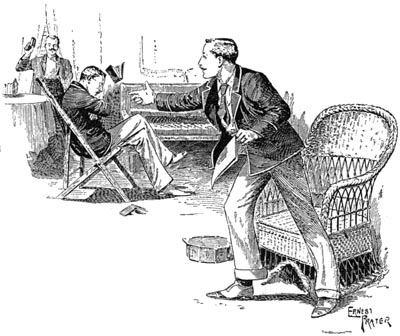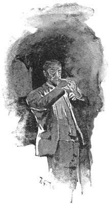 [Pg 217] “He wore his slippers, and the burglars—there were two of them—did not hear him until he was fairly in the dining-room. They were seated at the table, with their feet on the damask tablecloth, and the bottle of whiskey was nearly empty. The Colonel was much pleased to see that they had not damaged his silver-ware, and he was just about to thank them when they saw him. They started up, and one of them caught him by the throat, while the other held a pistol to his head, and promised to blow out his brains if he made the slightest noise. Then they tied him hand and foot, gagged him, and laid him on the floor, and then sat down to finish the whiskey.