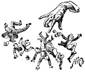 The small boy, poor little chap, lives under the most galling despotism that exists on the face of the earth. There is no court of appeal for him. His father is at once his judge, his opposing counsel, his public prosecutor, as it were, his jailer, and his executioner. Every man is a natural tyrant. It has taken centuries of bloodshed and martyrdom on the part of the oppressed to obtain even the poor semblance of liberty that we flatter ourselves we possess. Kings have been beheaded, thrones have [Pg 239] been overturned, cities have been given to the flames, and countries have suffered pillage and rapine, all to knock it into the head of that tyrannical brute, man, that, on the whole, it is better not to force his despotism on his fellow-creatures. Yet, human nature has not changed in the least, and where man has full sway, he is as much a tyrant to-day as he was five hundred years ago. Nations have been emancipated, but the kingdom of which the small boy is a subject remains what it always was. Nature, who is a well-meaning blunderer, has tried to set things right, first by planting some natural affection for his small boy into the stony heart of the parent, and, second, by making the small boy himself an optimist. Happily, there is always a silver lining to the cloud that hovers over the small boy, even when the cane is descending upon him. Trifles please the poor little fellow and help him to forget the gloom which surrounds him. Coventry Patmore, in that most touching poem, “The Toys,” tells of a father who struck his motherless son, and sent him weeping to bed, and, being tardily remorseful, the father looked at the sleeping boy, whose undried tears were still on his cheek, and found that before going to sleep the stricken lad had arranged his trivial toys, all the cherished possessions of his pocket, so that his eyes might rest on them “to comfort his sad heart.”