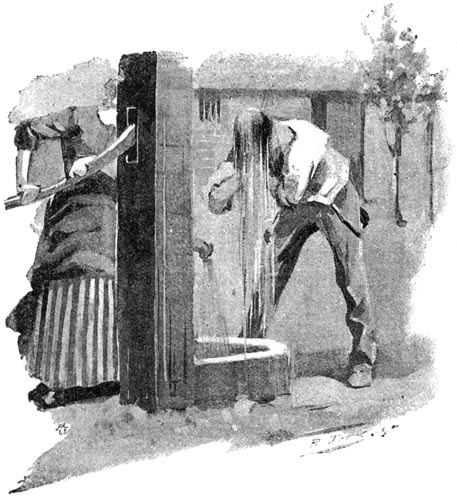 “made him wash at the pump.”
