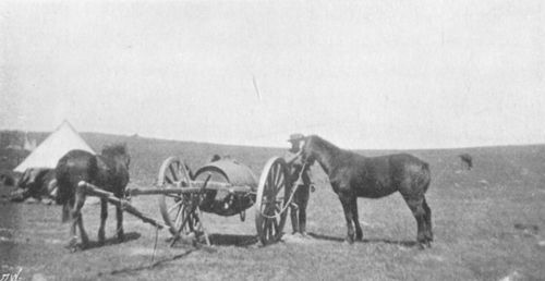 Footnote 8: The proper filtering of water for use in water-bottles and indeed for all drinking purposes, is most important, and especially so in hot weather, when men are always wanting a drink at off times, and will have it of course. Late in the war, the "Berkefeld Field Service Filter" was supplied to us by the Ordnance Department, and is very good; it packs up in what looks like a large-sized luncheon basket, and is very portable; it is simple to look after, if directions are followed, and will make about thirty-four pints in ten minutes, or, enough to fill fifteen men's water-bottles; consequently it can easily be used on the march during short halts, and whenever water is passed to fill up water-bottles, and it is quickly packed up again. For any individual who wishes to carry a filter on his own person, I would recommend a small "Berkefeld Cylinder or porous candle" and small "Pasteur pump" with the necessary rubber tubes; this makes a very small parcel; it would only take up about one quarter of the Service haversack, and is well worth taking I am sure. The "Berkefeld Filter" should be supplied to ships in case of landing Brigades—one to every unit of 100 is the proper proportion as recommended by the firm.[Back to Main Text]