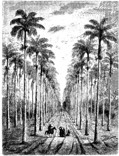 Je vais maintenant voir pour la première fois l'intérieur de Cuba. On ne saurait avoir un jour plus favorable. L'air est transparent et n'est pas excessivement chaud. Des nuages doux flottent à demi-hauteur dans un ciel serein; le soleil est brillant, et la luxuriante flore d'un été perpétuel couvre tout le pays. Partout s'élèvent ces étranges palmiers! je ne puis m'y habituer. Beaucoup d'autres arbres ressemblent aux nôtres, et l'on croirait qu'ils peuvent venir dans notre pays. Mais le palmier royal a l'air tropical par excellence: il ne peut croître hors d'une étroite ceinture qui court autour du globe. Son tronc, long, mince, si droit et si uni, emmaillotté depuis le pied dans le bandage serré d'une toile grise, montre un cou d'un vert foncé, et au-dessus une crête et un plumage de feuilles de la même couleur. Il ne donne pas d'ombre, et ne porte pas de fruits estimés de l'homme. Il n'a aucune beauté particulière pour faire pardonner son inutilité. Pourtant il a quelque chose de plus que la beauté, il exerce sur le regard une fascination étrange, et on sent, quand on l'a vu, qu'on ne peut plus l'oublier.