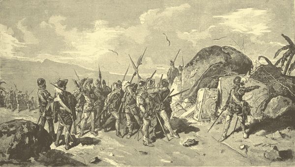 The storm at length ceased, and the lonely Pelican (which Drake, however, had renamed the Golden Hind) ran along the coast of Lima and Peru, reaping a golden harvest from the careless security of those who never thought to see an enemy on that side of the globe. There is something rather revolting, but very indicative of the temper of the age, in the constant reference to the guidance and protection of God, mixed with a quiet jocularity with which "Master Francis Fletcher, preacher in this employment," from whose notes the "World Encompassed," which is a narrative of this voyage, was compiled, speaks of acts very little different from highway robbery, such as would now be held disgraceful in (p. 180) open war; as for instance, on meeting a Spaniard driving eight llamas, each laden with one hundred pounds' weight of silver, "they offered their service without entreaty, and became drovers, not enduring to see a gentleman Spaniard turned carrier." Enriched by the most valuable spoil, jewels, gold, and silver, Drake steered to the northward, hoping to discover a homeward passage in that quarter. In the forty-eighth degree of north latitude, in what is now the State of Washington, he was stopped by the cold; and, determining to traverse the Pacific, he landed, careened his ship, and, in the queen's name, took possession of the country, which he named New Albion, September 29, 1579; he sailed again, and reached the Molucca Islands November 4th. In his passage thence to the island of Celebes, he incurred the most imminent danger of the whole voyage. The ship struck, as they were sailing before a fair wind, on a reef of rocks, so precipitous that it was impossible to lay out an anchor to heave her off. They stuck fast in this most hazardous situation for eight hours. At the end of that time the wind shifted, and the ship, lightened of part of her guns and cargo, reeled off into deep water, without serious injury. Had the sea risen, she must have been wrecked. This was Drake's last mishap. He reached Plymouth in the autumn of 1580, after nearly three years' absence. Accounts differ as to the exact date of his arrival.