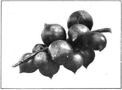 Another little-known fruit which does well in this State. It belongs to the hickory family, and closely resembles the walnut. There are trees now growing in the Maryborough district that are some 15 inches in diameter at the trunk, and from 40 to 50 feet in height, that bear regular and heavy crops of nuts, and that have stood drought and been under flood. For years the trees have received no cultivation, and they have shown themselves to be as hardy as the adjacent indigenous trees. The trees are easily raised from seed, and come into bearing in about eight years. Like all nut fruits, it is advisable to set the nut where the tree is to remain permanently, if it is possible to do so, as it produces a very deep taproot, with few laterals, and is consequently difficult to shift. The soil on which it does best is an alluvial loam, and, if possible, it should not be more than 30 feet to water, as the tree, being a very deep rooter, will penetrate a free soil to that depth. It will do on other free loamy soils, but will not make the same growth as when planted in free alluvials. It has been tested in several parts of the State, and it is probable that it will be found to thrive over a considerable area of the coastal and coastal tablelands districts. It produces an olive or acorn shaped nut, having a thin shell, and of a flavour closely resembling that of a good walnut, and will be a valuable addition to our list of nut fruits once it becomes better known.
