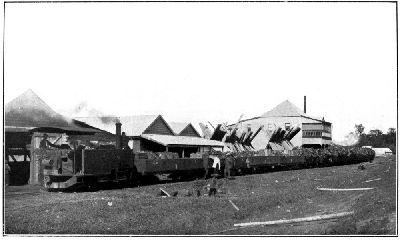 The pineapple comes into bearing early, and, except where suckers throw fruit as soon as planted, bear their first crop in from twelve to twenty months, according to the type of suckers planted and the time of year at which they are set. Practically every sucker will produce a fruit at the first fruiting, and these will be followed by succeeding crops, borne on the successive crops of suckers, so that when the whole of the ground is occupied by plants, the returns are very heavy. One thousand dozen marketable fruits is by no means an unusual crop for Queen pines in a plantation in full bearing, and, taking these at an average of 2½ lb. each, you get a return of 30,000 lb., or 15 tons American per acre. The illustrations herewith give a good general idea of the usual method of growing pines, and the method of handling and marketing, as well as of the nature of the country on which they are grown. The illustrations are mostly of smooth-leaved pines, which bear a fruit averaging from 6 to 8 lb. each, but occasionally running up to as much as 14 to 16 lb., though the latter is an extreme weight. The single pine shown is just under 12 lb. Several kinds of pines are grown, which are generally classified into roughs and smooths. The rough, or rough-leaved pines, such as the Common Queen and Ripley Queen, and local seedlings raised from them, are very prolific, and though not equal in size and appearance to the smooth-leaved Cayenne, our principal smooth-leaved kind, are usually considered to be of superior flavour, and to be better for canning or preserving. Rough pines run up to as much as 6 lb. weight each, but this is uncommon, the best average I have met with being about 4 lb. per pine, and they were exceptionally good. The price at which this fruit sells here seems absurd to those living in cold countries, who are accustomed to look upon it as a luxury only found on the tables of the wealthy, as good rough-leaved pines are worth about 1s. per dozen during the summer season, and smooth-leaved pines from 1s. 6d. to 2s. 6d. a dozen. Prices are certainly higher during the off-season, but growers would be well satisfied to get 1s. per dozen for rough pines all the year round. I have no hesitation in saying that pines can be grown at a profit at from £3 to £4 per ton, so that the cost of growing is so low that there is nothing to prevent us from canning the fruit and selling it at a price that will defy competition.