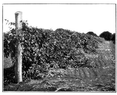 No work on fruit-growing in Queensland, however small, would be complete without due reference being made to the vine, the last but by no means the least important of our many fruits. Although the cultivation of this most useful and popular fruit has not reached to anything like the dimensions that vine culture has attained in the Southern States, particularly in the production of wine, there is no reason why it should not do so at no very distant future. We have many advantages not possessed by our Southern neighbours in the culture of the grape, the first and most important of which is that our crop ripens so much earlier than that of the South that we can secure the whole of the early markets without fear of any serious opposition. Until quite recently, grape culture was in a very backward state in Queensland, the grapes grown on the coast being nearly all American varieties, which are by no means the best wine or table sorts. A few grapes of European origin were grown on the Downs and in the Roma district, but their cultivation was practically confined thereto. Now, however, things have altered very much for the better. Many good varieties of European grapes have been proved suitable to the coastal climate of the Southern half of the State, and many inland districts other than Roma and the Downs have also proved that they, too, can and do grow first-class fruit both for table and wine.