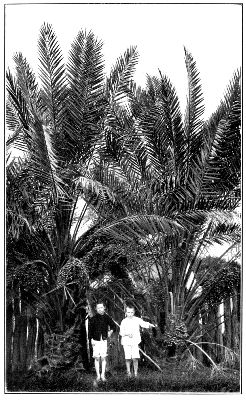 Although this extremely valuable fruit is grown in this State more as an ornament than for its commercial value, there is nothing to prevent its culture on a scale sufficiently large to supply the Australian requirements. It is grown in many places along the coast, as well as in the foothills country of the coastal range, but it does best in situations that more nearly resemble its natural habitat—viz., in districts having a hot dry air, a deep sandy loam or sandy soil, and a good supply of moisture in the soil. This latter condition does not occur naturally, but can be supplied artificially in our Western lands, where there is a good supply of artesian water of a quality suitable to the plants' requirements. Here the date palm thrives, and produces huge bunches of fruit. Little, if any, cultivation is necessary when once the palm is firmly established; provided it has an ample but not excessive supply of moisture, it is able to take care of itself.
