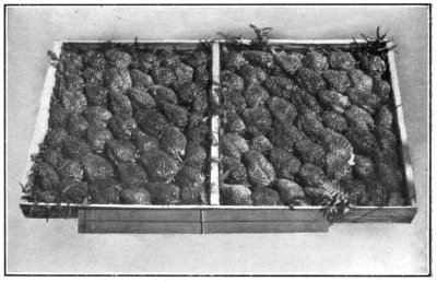 To those who have been accustomed to look upon the strawberry as a fruit of the purely temperate regions, it will be somewhat of a revelation to know that exceptionally fine fruit can be grown right on the Queensland coast, and well within the tropics, and that on the coast, between the 26th to the 28th degrees of south latitude, we are probably producing as fine fruit and obtaining as heavy crops as are produced in any of the older strawberry-growing countries. Not only this, but that we are able to supply the Southern markets of Australia with finer fruit than they can produce locally, and at a time of the year that they cannot grow it. As I have already mentioned when dealing with other fruits, one thing that particularly impresses strangers is the early age at which our fruits come into bearing. This is borne out in the case of the strawberry to a marked degree, as runners set in April fruit in July, and often earlier, and will continue to bear, given reasonable weather, right up to Christmas or even longer. New plants are set out every year, and the plantation is seldom allowed to stand more than two years, as the young plants produce the finest fruit. There is a good demand for the fruit, the larger berries being packed in flat cases holding a single layer of fruit, as shown in the illustration, and being sold for consumption fresh, whereas the smaller berries are packed in kegs and sent direct to the factories for conversion into jam. The strawberry grows well on various soils, but does best with us on a rich loam of medium texture, of a reddish-brown or even black colour. It should be planted in districts that are free from frosts where early fruit is desired, as frosts injure the blossoms, but where jam fruit only is wanted this is not so necessary. The land requires to be thoroughly well prepared, and the plants are usually set out in rows about 2 feet apart, with the plants about 1 foot apart in the row. Under favourable conditions they grow very rapidly, and soon start flowering. Their cultivation is usually confined to comparatively small areas of 2 or 3 acres in extent, as the labour of picking and packing is usually done by the grower himself with the assistance of his family. They are often planted between the rows of trees in young orchards, thus bringing in a return whilst the trees are coming into bearing, and helping to keep the pot boiling. They grow well on our coastal scrub lands, and have proved a great assistance to many a beginner, as one has not long to wait before obtaining a return.