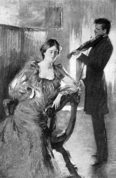 And, if the truth must be told, it is to be feared that if Rosina’s unhappy suitor could have caught a glimpse of her as night fell over that same day’s ending, his sickest doubts would have found food for reflection and consequent misery in her situation, for when Ottillie, the Swiss maid, came up on deck with a great, furred wrap, the most personable man aboard was already installed at her mistress’s side, thanks to a convenient college acquaintance with her dearest of cousins; and the way that the personable man grabbed the cloak from Ottillie and heaped it gently around[8] its owner would have stirred the feelings of any casual lover whose bad luck it might be to happen along just then.