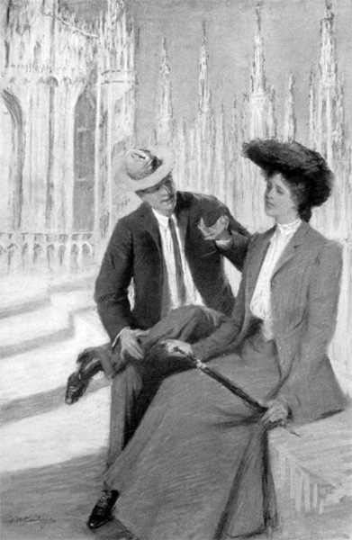 “If you had been rich and I nobody, it had been so simple to marry you, perhaps; but being myself somebody, I cannot risk anything. It is so easy to marry an American when one desires but her money, but when one has also money and desires to marry, voilà ce qui est difficile. It was for that that I go to the Gare with that man of Zurich,—ah, he has surely serve us well, that Zuricher man,—and I get of him the address of your uncle, and then I may write to that uncle and beg that one be sent over who will have full power to arrange for you, if I can ever bring you to say ‘Yes.’” He stopped and his voice sank. “I could not be sure that you would say ‘Yes’ ever,” he continued softly; “but in your eyes, even at first, I have thought to find a hope.”