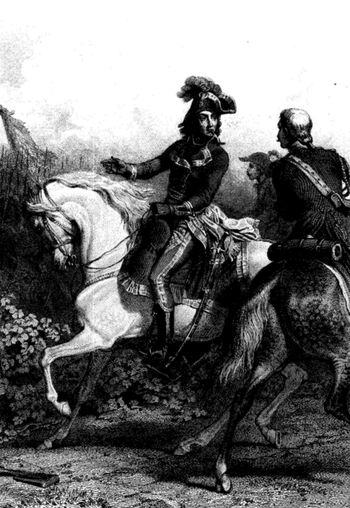 C'étaient déjà deux combats heureux dans la journée, dus en partie à la cavalerie, et ce n'était pas le dernier. Lecourbe se place sur l'Egge, attendant le reste de ses réserves, qui arrivaient par le pont de Dillingen, tombé dans nos mains. Mais la cavalerie de M. de Kray accourait en toute hâte, devançant l'infanterie, et se formait sur deux grandes (p. 481) lignes, dans la plaine en arrière de Lauingen. C'était le cas pour notre cavalerie de profiter de l'élan qu'elle devait aux succès du matin, et de se mesurer en plaine avec les nombreux et brillants escadrons de l'armée autrichienne. Lecourbe, après avoir fait occuper Lauingen par son infanterie, réunit toutes les troupes à cheval de ses divisions à celles de d'Hautpoul, et les déploie dans la plaine, offrant aux ennemis un genre de combat qui devait les tenter, à cause du nombre et de la qualité de leurs cavaliers. La première ligne autrichienne s'ébranle au galop, avec l'ensemble et l'aplomb naturels à une cavalerie très-manœuvrière. Elle ramène en effet le 2e régiment de carabiniers, qui s'était si vaillamment conduit le matin, et quelques escadrons de hussards qui avaient chargé avec lui. Alors nos cuirassiers s'avancent, rallient les carabiniers et les hussards, qui font volte-face en se voyant appuyés, et tous ensemble fondent avec vigueur sur les escadrons autrichiens, qu'ils ramènent à leur tour. À cette vue, la seconde ligne de la cavalerie ennemie s'élance, et, ayant l'avantage de l'impulsion sur nos cavaliers, qui s'étaient désunis dans la charge, les oblige à revenir en toute hâte. Mais le 9e était en réserve. Manœuvrant avec habileté et hardiesse, il aborde par le flanc la cavalerie autrichienne, la surprend, la renverse, et assure à nos escadrons victorieux la plaine d'Hochstëtt.