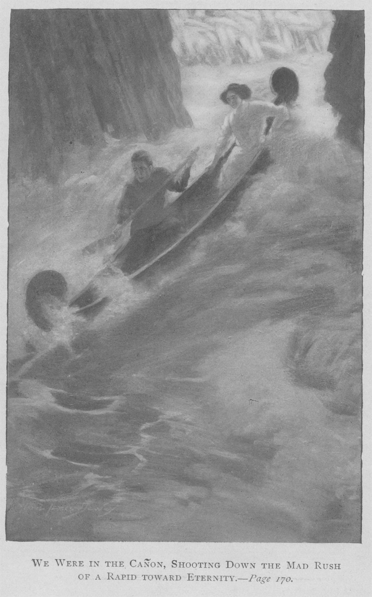 We Were in the Cañon, Shooting Down the Mad Rush of a Rapid toward Eternity.—Page 170.