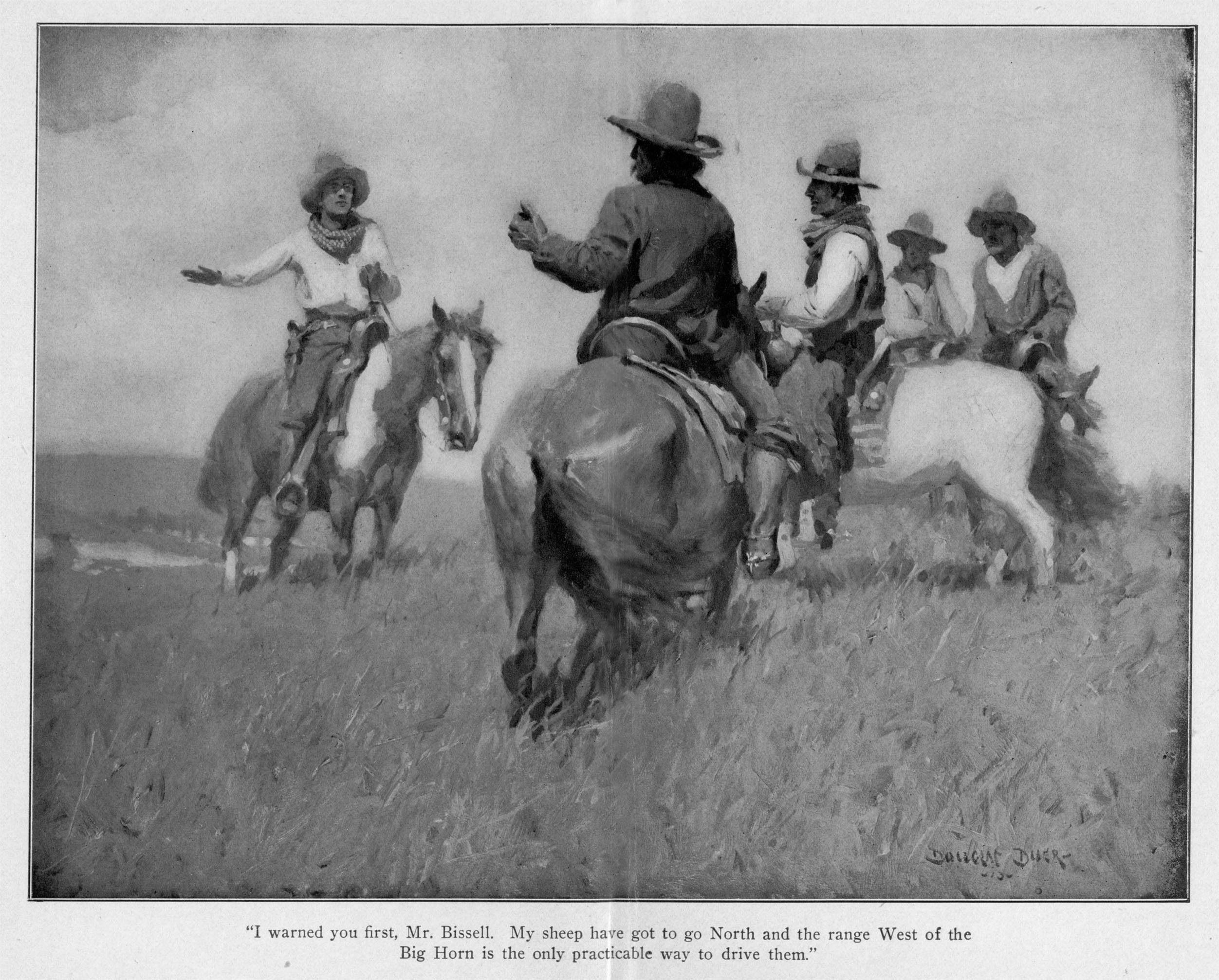 “I don’t want to ruin anybody,” puffed old “Beef” Bissell, whose cattle overran most of the range between the Gray Bull and the Big Horn. “But I allow as how them sheep of yours had better stay down Nebrasky way where they come from.”