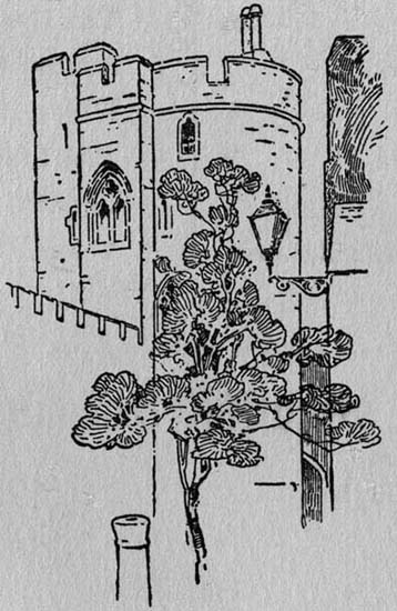 This description is much less true of Rochester than of its three neighbours, and does no justice to the aspects which Dickens himself presented in the Market Town of Great Expectations, and the Cloisterham of Edwin Drood. Amid the rather sordid encroachments of a modern industrialism, Rochester still keeps something of the air of an old-world country town, and in the precincts of its Cathedral there still broods a cloistral peace. The dominating feature of the town, from whatever side approached, is the massive ruin of the Norman Keep of Bishop Gundulf, the archi[15]tect also of London's White Tower. Though the blue sky is its only roof, and on the rugged staircase the dark apertures in the walls, where rafters and floors were once, show like gaping sockets from which the ravens and daws have picked out the eyes, it seems to stand with all the immovable strength of some solid rock on which the waves of rebellion or invasion would have dashed and broken. It is easy to believe the saying of Lambarde, in his Perambulation of Kent, that "from time to time it had a part in almost every tragedie". But the grimness of its grey walls is relieved by a green mantle of clinging ivy, and though it can no longer be said of the Castle that it is "bathed, though in ruins, with a flush of flowers", the beautiful single pink grows wild on its ramparts.