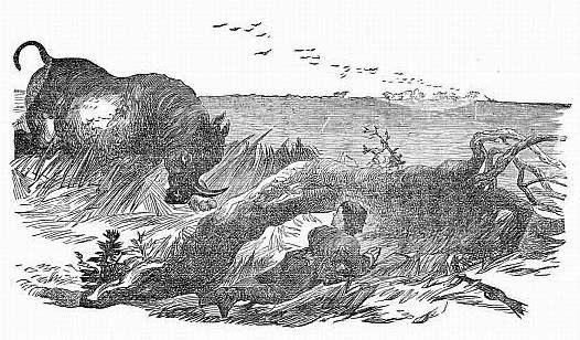 For nearly three miles, the young hunters rode along the bank of the river, without finding any spot where access to the water could be readily obtained. The banks were high and steep, and therefore but little visited by such animals as they wished to hunt. At this point the features of the landscape began to change, presenting an appearance more to their satisfaction. Light timber, such as would be required for the construction of a stockade, was growing near the river, which was no longer inaccessible, though its banks appeared but little frequented by game.