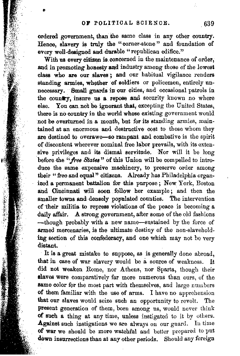 Chancellor Harper, with a master hand, draws a parallel between the social condition of communities where slave labor[xiii] exists and where it does not, and vindicates the South from the aspersions cast upon her.