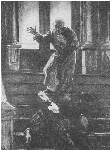 On the stairs Steptoe raised his bowed head, with a dazed stare. Seeing Miss Walbrook he stumbled to his feet.
