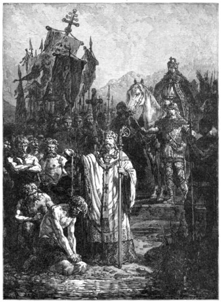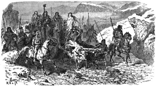 The whole army was now in motion, the king leading amid the darkness and gloom of the mist.