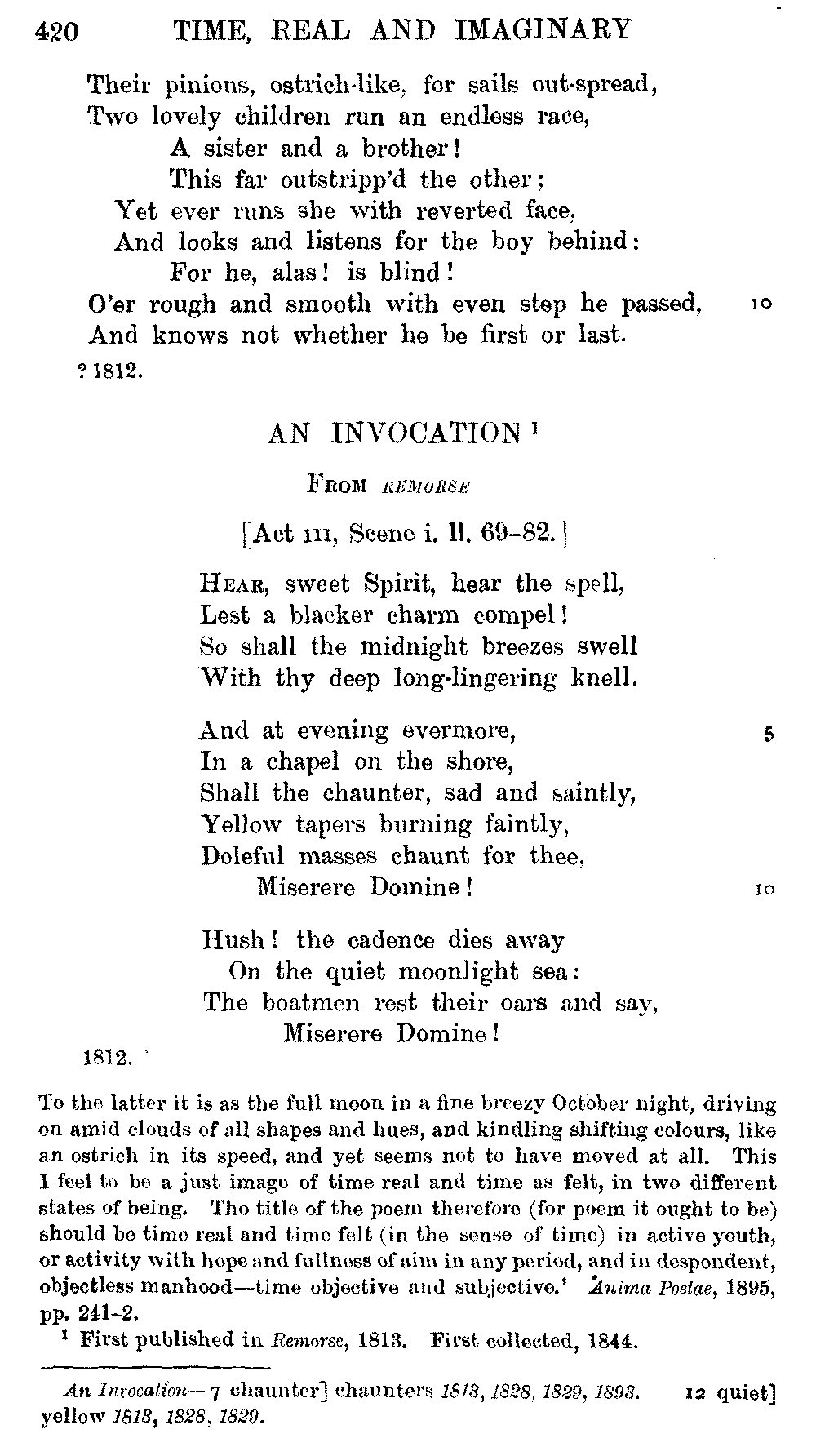 the text of 1829 differs from that of 1834, and that Coleridge himself,