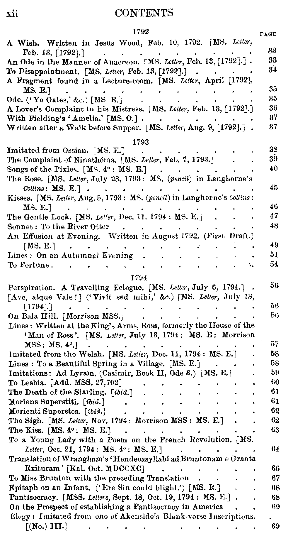 The poems have been printed, as far as possible, in chronological order,