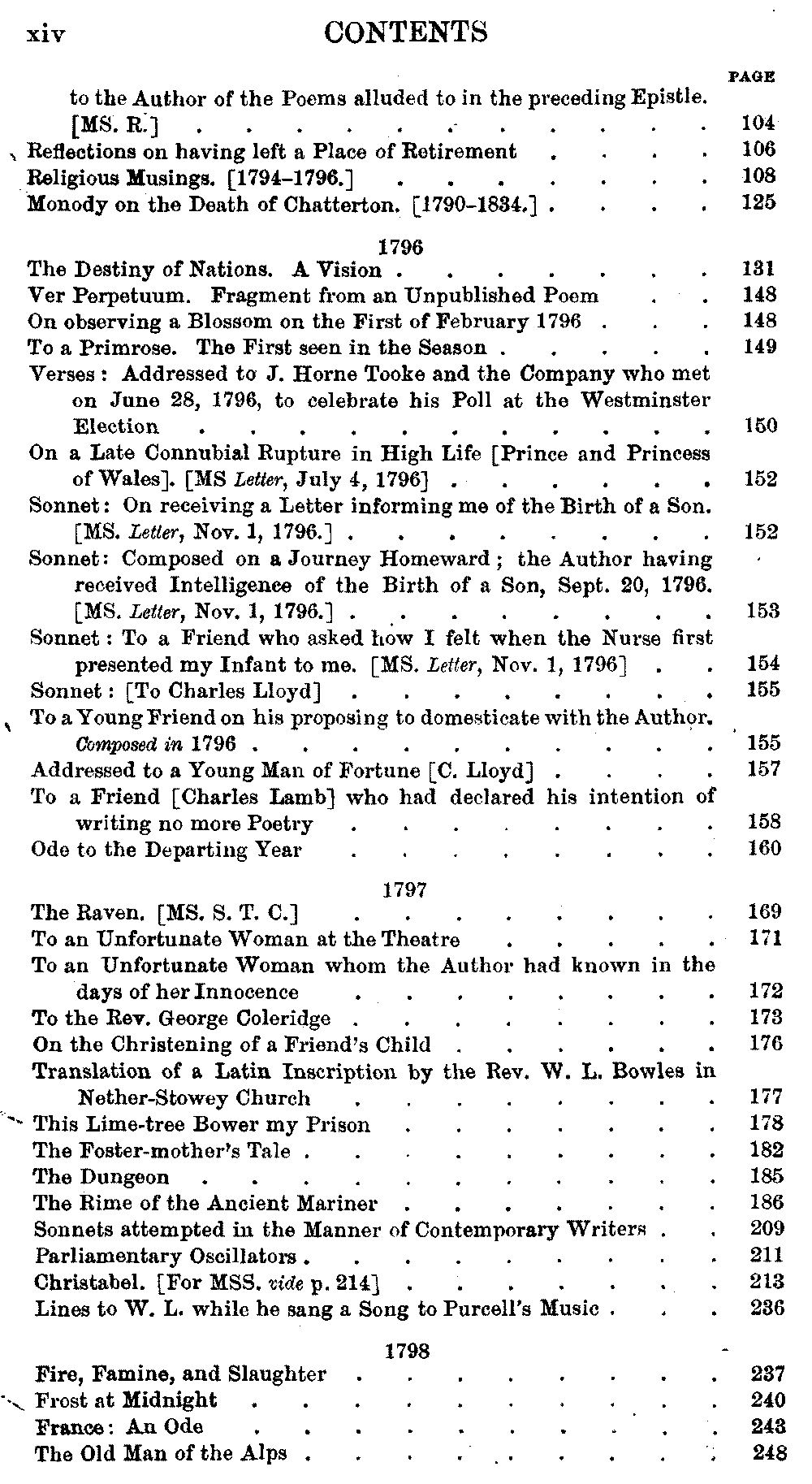 page 256: Title] Fears &c. Written, April 1798, during the Alarms of
