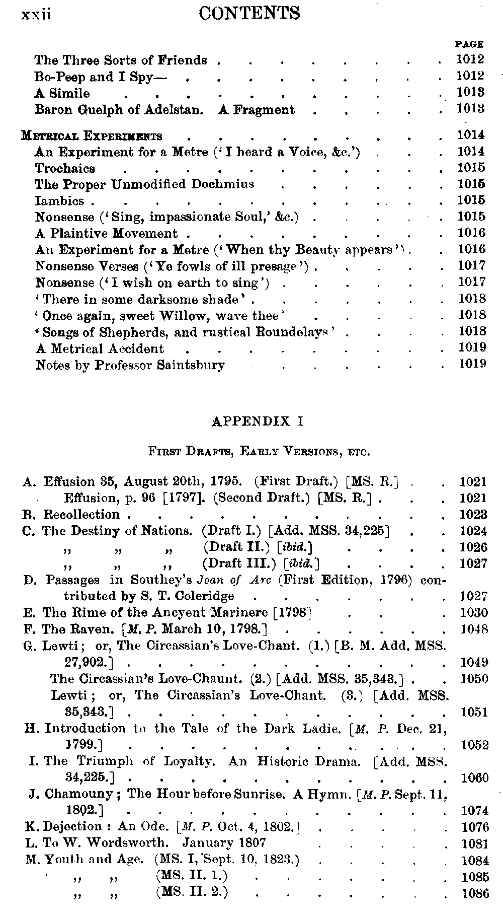 Appendices a considerable number of poems, fragments, metrical