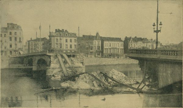 This bridge over the Meuse at Liege was blown up by the Belgians to delay the German advance. The German army crossed on pontoon bridges.