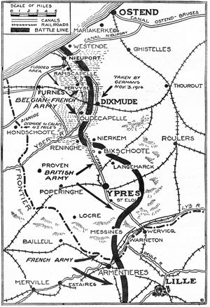 By the middle of February the last Russian had been driven out of Germany. This series of battles, known commonly as the "Winter Battle of the Mazurian Lakes" not only freed East Prussia, but yielded comparatively large results in the numbers of prisoners taken. In nine days' fighting about 50,000 men, 40 guns, and 60 machine guns were captured. Both sides, of course, suffered also heavy losses in killed and wounded. These great battles here briefly summarized to round out the account of the operations of the first six months are described in greater detail in Volume III.[Back to Contents]