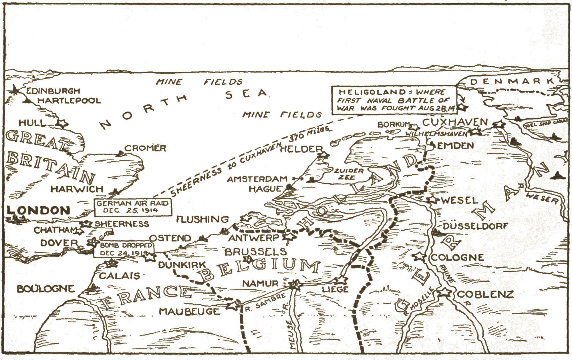 The seething flames of economic supremacy that were consuming Europe had threatened from the beginning of the war to creep into the Occident, as we shall see in the chapter on "Japan and the Far East." Moreover, as described in "Naval Operations," it was in the waters of the Near East that the first big incident of the war on the sea took place.