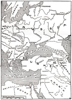 The entrance of Turkey, the seat of the ancient Ottoman Empire, into the Great War in 1914, with its vast dominions in Europe, Asia, and Africa, created a situation which it was appalling to contemplate. The flames of world war were now creeping not only into the Holy Land, the birthplace of Christian civilization, but to the very gates of Mecca, the "holiest city of Islam." Would the terrible economic struggle in Europe, the war for world trade, now develop into a holy war that would bring the religious faiths of the earth on to a great decisive battle ground?