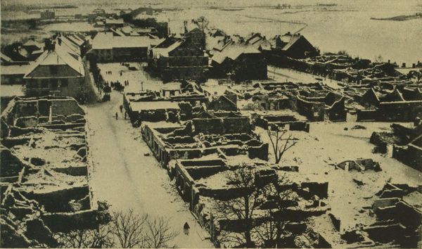 The town of Gerdauen, East Prussia was burned during the Russian invasion, when for a time East Prussia suffered like Belgium and Poland.