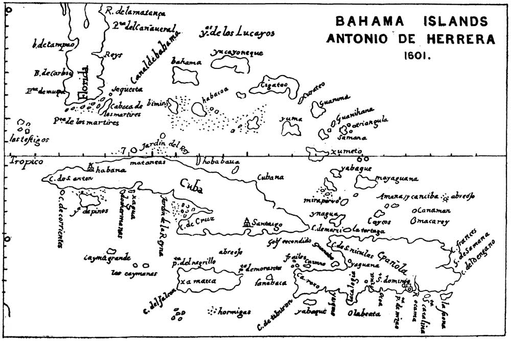 [6] Helps refers to the island as "one of the Bahamas." It has been variously identified with Turks Island, by Navarette (1825); with Cat Island, by Irving (1828) and Humboldt (1836); with Mayaguara, by Varnhagen (1864); and finally, with greatest show of probability, with Watling Island, by Muñoz (1798), supported by Becher (1856), Peschel (1857), and Major (1871).