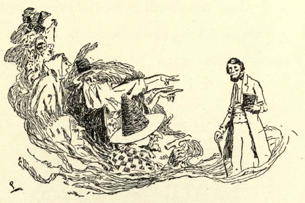 “Come here, you witches! Come here!” says he,—