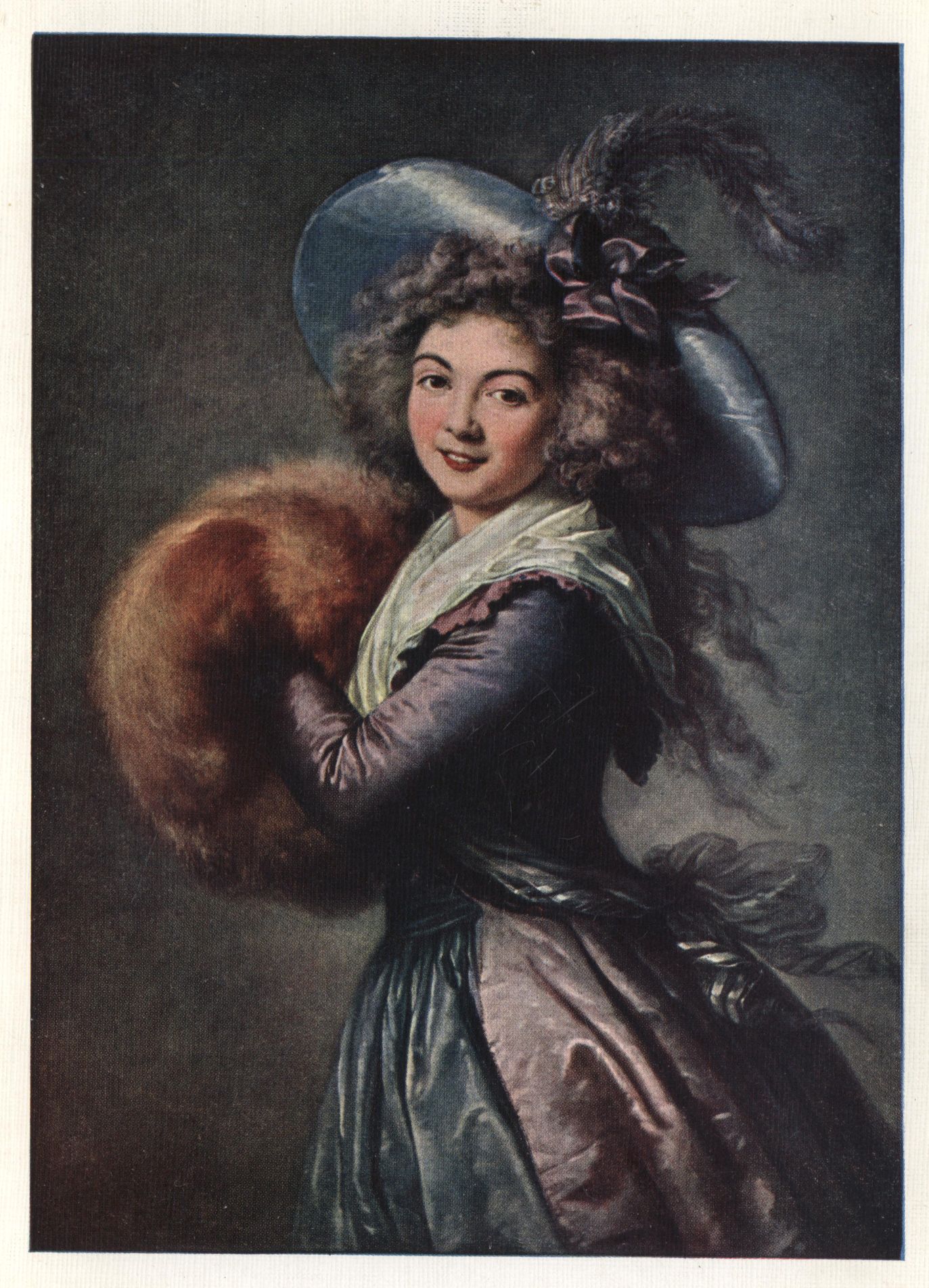 At the Salon of 1787, in her thirty-second year, is record of a picture of "Marie Antoinette and her Children"; and of herself with her girl; and, amongst others, those of Mademoiselle Dugazon and of Madame Molé-Raymond. This famous painting of Madame Molé-Raymond, the pretty actress of the Comédie Française, is one of Vigée Le Brun's masterpieces. Her brush is now at its most dexterous use; the laughing pretty woman is caught like a live thing and fixed upon the canvas as at a stroke as she trips across the vision, with muff upraised, smiling out upon us as she passes. Vigée Le Brun never stated character with more consummate skill than here; never set down action with more vivid brush, catching movement flying; she never stated life more truly nor with more exquisite tact than in this bright vision of a dainty woman of the theatre.